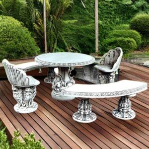 Das Set Steintisch Einfach Tivoli + 2 x Steinbank Tivoli mit Fischen ist eine ausgezeichnete Wahl für alle, die Möbel suchen, die außergewöhnliches Design mit Haltbarkeit vereinen. Die Ausführung in Architekturbeton verleiht dem Set ein modernes und elegantes Aussehen und garantiert gleichzeitig Widerstandsfähigkeit gegenüber der Zeit und den Witterungsbedingungen. Egal, ob Sie Sommerabende im Garten genießen oder inmitten der Natur entspannen möchten, das Tivoli-Set wird zu einem unverzichtbaren Element Ihrer Außenbereiche und bietet sowohl Komfort als auch Ästhetik auf höchstem Niveau.