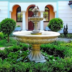 Der Springbrunnen Gemelli ist ein außergewöhnliches dekoratives Element, das dem Garten einen einzigartigen Charme und Eleganz verleiht. Seine monumentalen Maße – 290 cm Höhe und 150 cm Durchmesser der größten Schale – machen ihn zur perfekten Wahl für große Räume wie weitläufige Gärten, Höhlen oder Terrassen. Das zentrale Element des Springbrunnens ist eine subtile Skulptur, die zwei Figuren unter einem Schirm darstellt und Harmonie und Zartheit symbolisiert. Mit diesem Design wird der Springbrunnen Gemelli nicht nur zu einer Dekoration, sondern auch zu einer visuellen Erzählung, die Bewunderung weckt und die Aufmerksamkeit jedes Betrachters auf sich zieht.