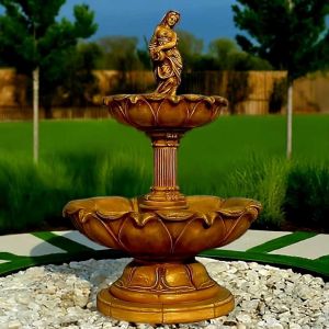 Die beeindruckende Konstruktion des Springbrunnens Lotusblume 2 umfasst drei Ebenen von Schalen, die harmonisch zu einer eleganten Einheit verschmelzen. Der obere Teil wird von einer kunstvollen Lilie geschmückt, aus der das Wasser fließt und ein außergewöhnliches visuelles Spektakel schafft. Mit einer Höhe von 220 cm und einem Durchmesser der größten Schale von 145 cm wird dieser Springbrunnen zum Mittelpunkt jeder Umgebung, unabhängig von deren Größe. Kaskadierende Struktur begeistert nicht nur visuell, sondern verleiht der Umgebung auch einen luxuriösen Charakter.