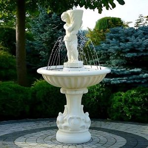 Die Fresco Springbrunnen sind eine Kollektion außergewöhnlicher Dekorationen, die klassische Eleganz mit einem modernen Ansatz für die Gestaltung von Außenräumen verbinden. Hergestellt aus robustem architektonischem Beton, zeichnen sie sich durch ihre Widerstandsfähigkeit gegenüber wechselnden Wetterbedingungen aus, was sie zu einer Investition für viele Jahre macht. Reich verzierte Becken, stilvolle Figuren und sorgfältig ausgearbeitete Details machen diese Springbrunnen zu einem zentralen Punkt jedes Gartens oder Terrasses. Optionale Zubehörteile wie Kupferdüsen oder LED-Beleuchtung ermöglichen spektakuläre Wassereffekte und betonen den einzigartigen Charakter jeder Gestaltung.