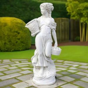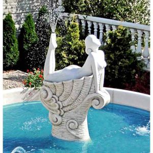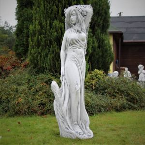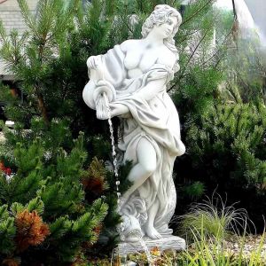 20. Steinfigur Überlaufende Goldhaarige mit Krug und Fisch
